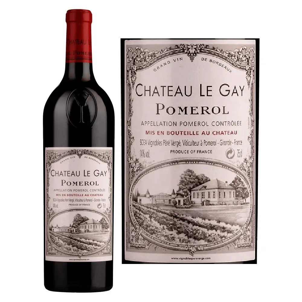 Chateau Le Gay Pomerol là dòng rượu vang đỏ thượng hạng được làm từ 2 giống nho Cabernet Franc, Merlot sản xuất tại Pomerol, Pháp. Pomerol là vùng nhỏ nhất ở Bordeaux với 800 ha vườn nho. Khu vực có khoảng 150 Chateau chuyên sản xuất rượu vang.
