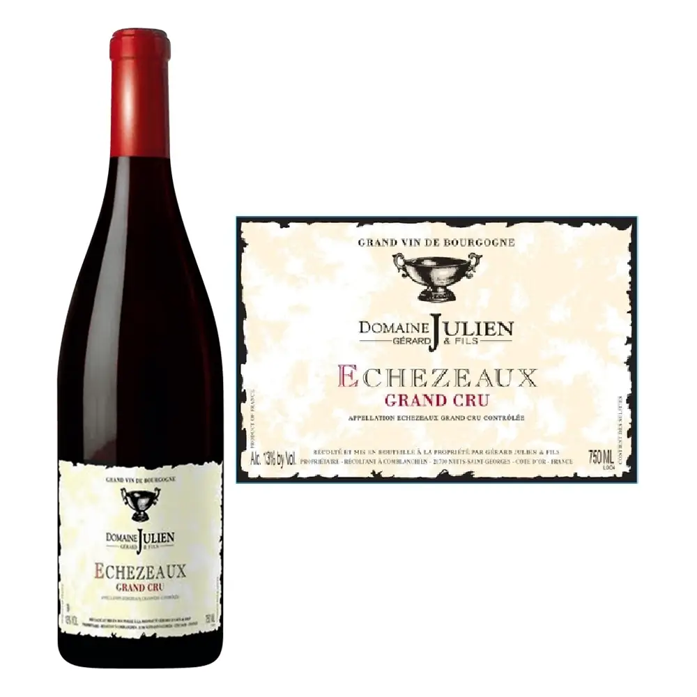 Domaine Julien Echezeaux Grand Cru là dòng rượu vang cao cấp được làm từ nho Pinot Noir, những cây nho được trồng trên đất sét, bùn đỏ và sỏi trên nền đá vôi bajocian, cho ra năng suất khoảng 1000 chai một năm.