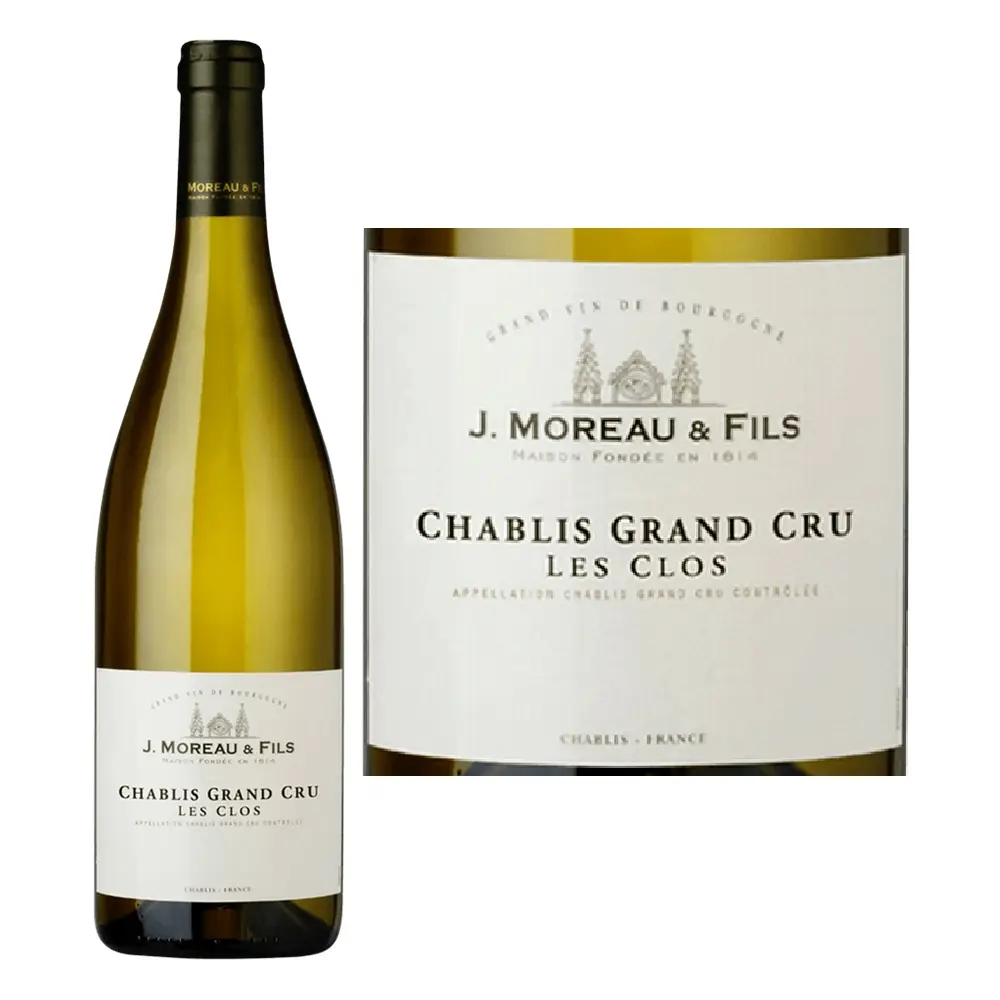 J. Moreau & Fils Chablis Grand Cru Les Clos là dòng rượu vang trắng cao cấp được làm từ 100% nho Chardonnay thuộc sở hữu nhà sản xuất J. Moreau et Fils, nước Pháp.