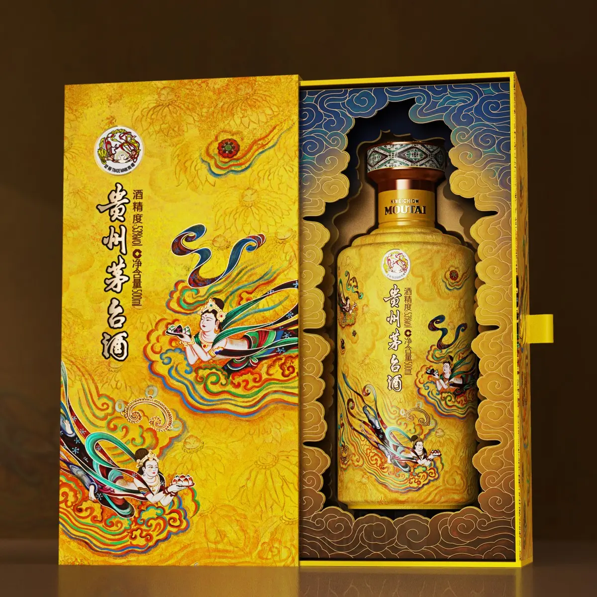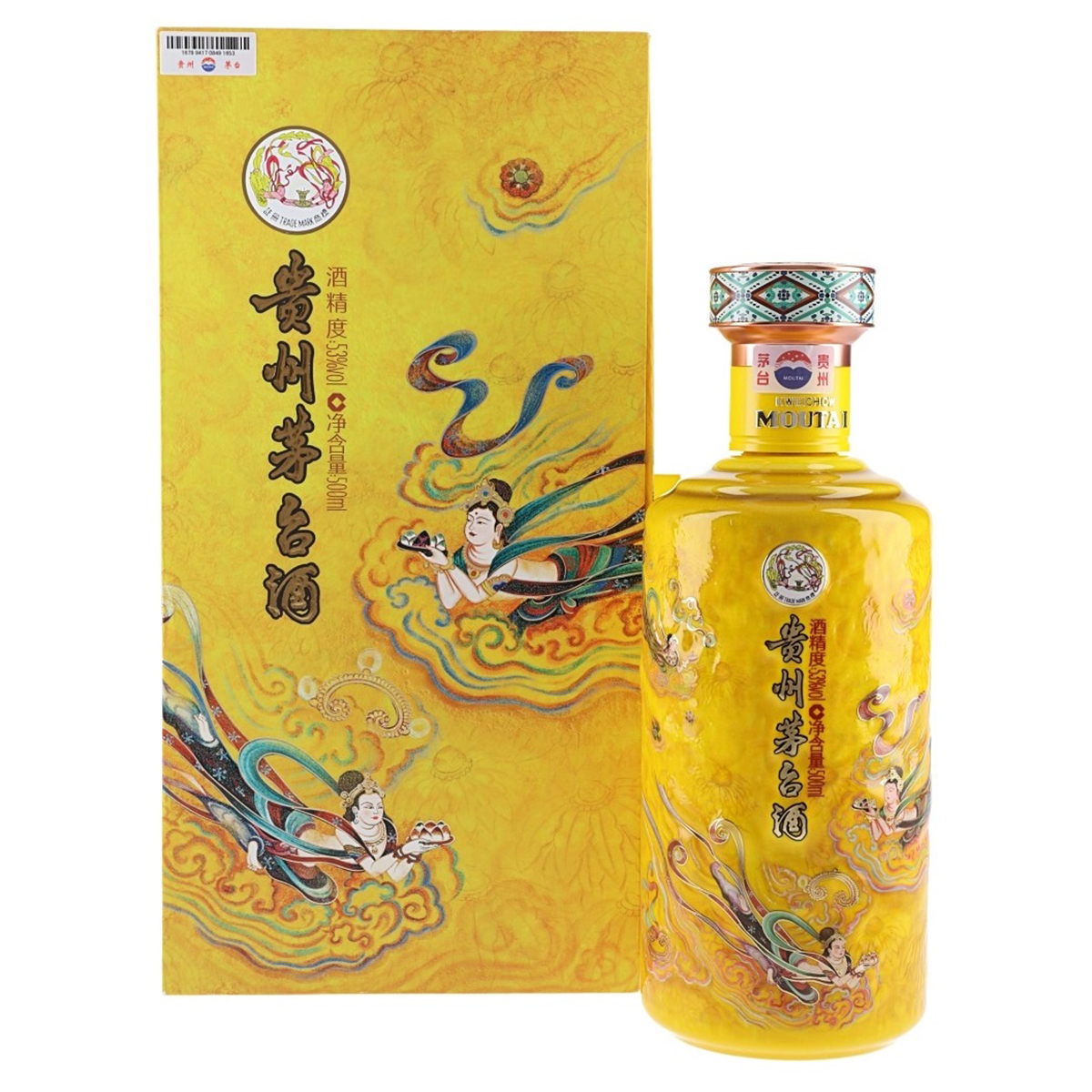 Kweichow Moutai Scattered Flowers and Flying Apsaras (Sanhua Feitian) – 散花飞天贵州茅台酒 – Mao Đài Phi Thiên Tán Hoa là phiên bản phi thiên cao cấp thuộc bộ sưu tập “Feitian Culture Series” (飞天文化系列酒) phát hành giới hạn vào năm 2024, có bao bì từng đoạt giải thưởng, lấy cảm hứng từ tranh tường Đôn Hoàng, thể hiện hình ảnh nàng tiên bay thanh tao thời nhà Đường qua các họa tiết vẽ thủ công, kết hợp giữa di sản văn hóa và vẻ đẹp nghệ thuật.