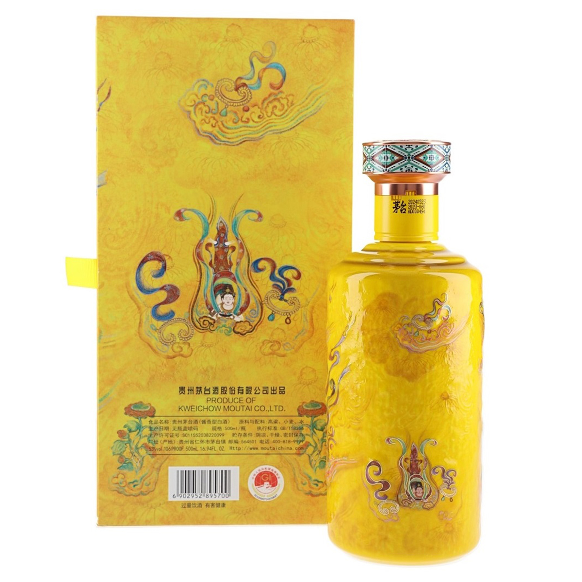 Kweichow Moutai Scattered Flowers and Flying Apsaras – 散花飞天贵州茅台酒 – Mao Đài Phi Thiên Tán Hoa do Công ty TNHH Guizhou Moutai sản xuất, được làm từ lúa miến, lúa mì hữu cơ và nước chất lượng cao. Từ nguyên liệu đầu vào, mỗi chai rượu Moutai được hấp chín lần, lên men tám lần và chưng cất bảy lần để rượu có độ tinh khiết nhất có thể. Sau khi sản xuất, rượu được phân loại và lưu trữ, pha trộn và bảo quản trong hầm rượu, và cuối cùng được đóng gói để đưa ra thị trường. Toàn bộ quá trình sản xuất mất năm năm. Thời gian ủ lâu dài này khiến từng giọt rượu Moutai thơm hơn, mềm hơn và tinh tế hơn.