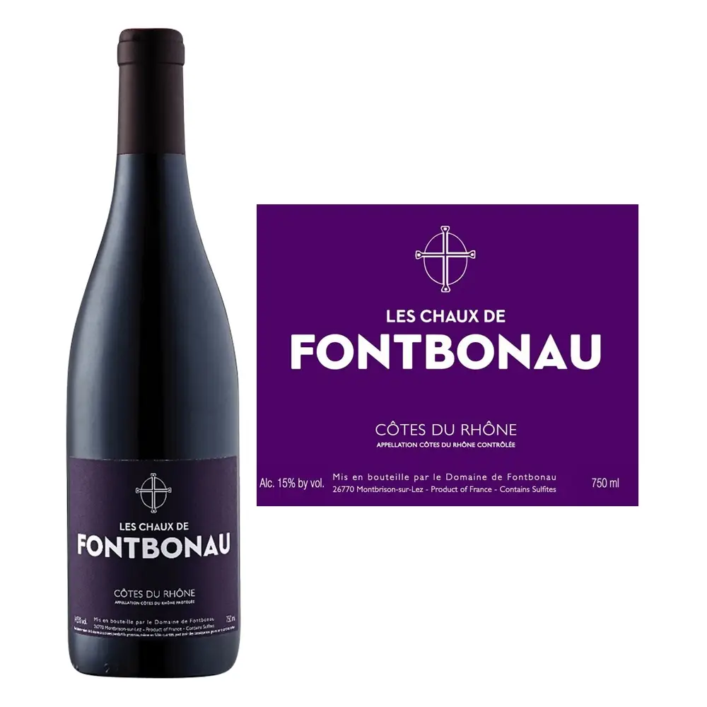 Rượu vang Les Chaux de Fontbonau Cotes du Rhone được làm từ 2 giống nho với tỷ lệ 85% Grenache, 15% Syrah, chai rượu sản xuất bởi nhà sản xuất rượu vang Domaine Fontbonau nổi tiếng, nước Pháp.