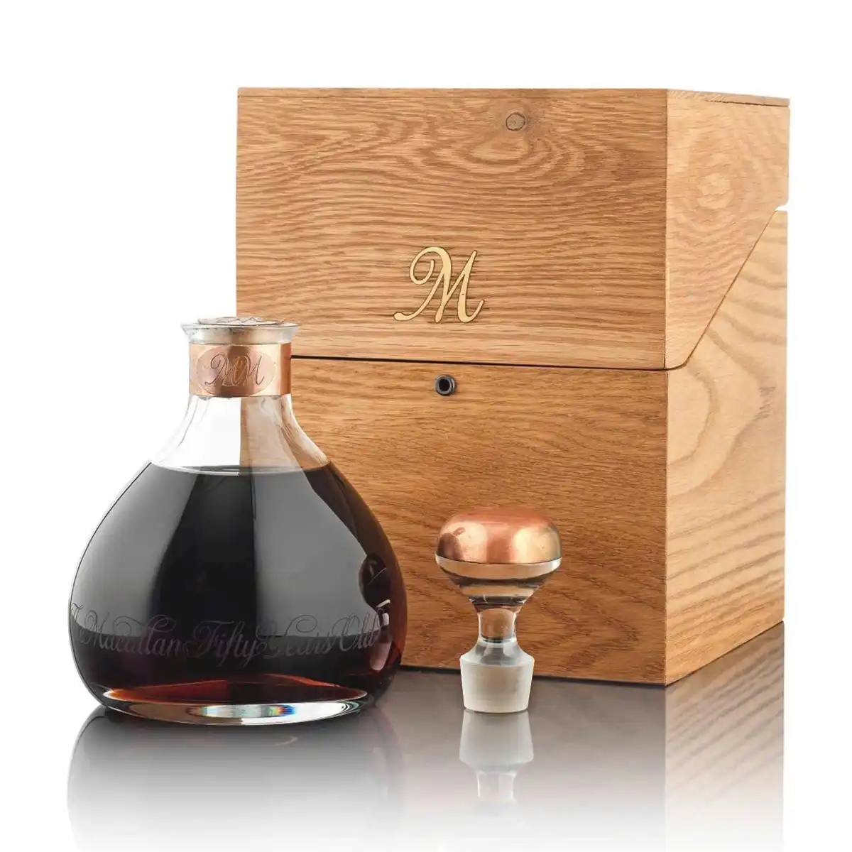 The Macallan Millennium Decanter 50 năm tuổi mang thiết kế hình tròn đặc biệt, được ra mắt vào năm 1999 (khối rượu 50 năm tuổi), với số lượng giới hạn chỉ có khoảng 900 chai được sản xuất, thể tích 700ml, đóng trong bình pha lê Caithness sang trọng, có vòng cổ bằng đồng hồng hay còn gọi là đồng đỏ và nút chai bằng đồng được tái chế từ chiếc nồi chưng cất số 9 tại nhà máy chưng cất Macallan, mỗi chai đi kèm 1 chìa khoá riêng biệt.