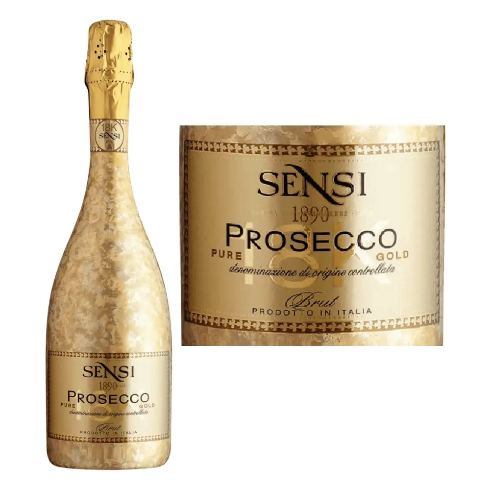 Sensi 18K Prosecco Gold Brut Sparkling là dòng vang sủi Pháp có chứa vảy vàng 18K thật tạo nên sự độc đáo sang trọng và đầy quyến rũ, đảm bảo sẽ làm bạn thích ngay từ cái nhìn đầu tiên. Chai rượu thuộc sở hữu của nhà máy Sensi được thành lập năm 1890.