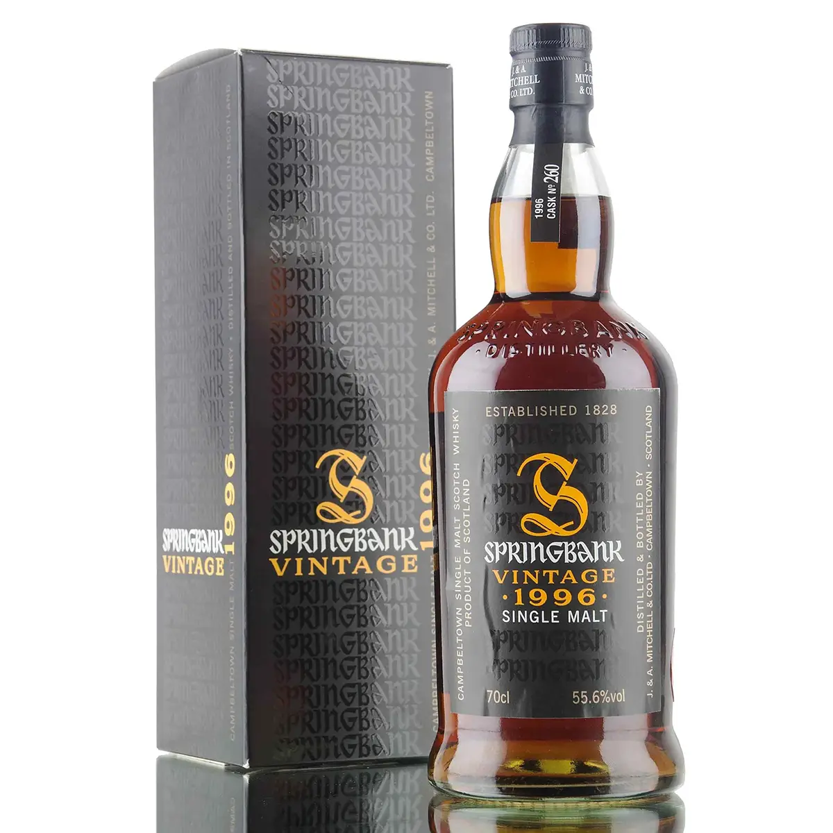Springbank 1996 Manzanilla Sherry Cask #261 được đóng chai bởi nhà máy chưng cất Springbank độc quyền cho thị trường Scandinavia vào năm 2009, với số lượng giới hạn chỉ 610 chai, ở mức nồng độ nguyên bản từ thùng đơn là 55.8% ABV.