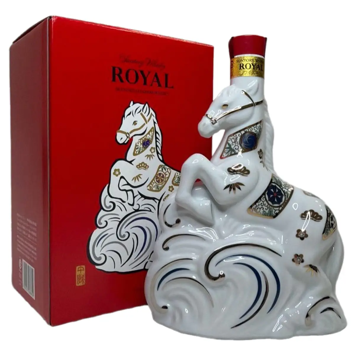 Năm 2026, phiên bản giới Suntory Whisky Royal 2026 hạn mang nhãn vàng khắc họa bạch mã tung vó giữa sóng tím lam, gợi hình ảnh “Mã đáo thành công”. Sự kết hợp vàng – tím biểu trưng cho phú quý, cao quý và trường tồn, gửi gắm thông điệp cát tường cho năm mới. Những hoa văn Nhật Bản như hoa đào, lá trúc, cánh quạt càng tôn thêm nét tinh tế, khiến cho Suntory Whisky Hoàng Gia 2026 Edition Limited nhãn hình con ngựa trở thành món quà Tết sang trọng, giàu ý nghĩa văn hóa Việt Nam.